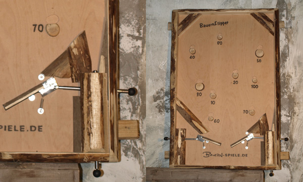 mit Druckhebel-System, Flipper aus Holz, Funktionen wie beim klassischen Flipperspiel.