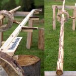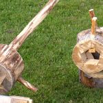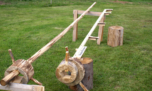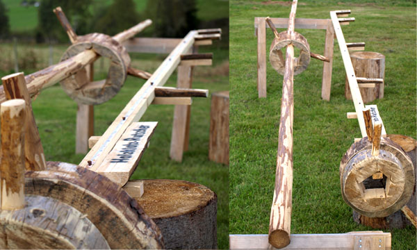 Power-Geschicklichkeitsspiel, wer befördert das ausgehöhlte Holzstück in richtige Zone.