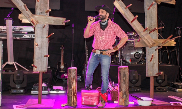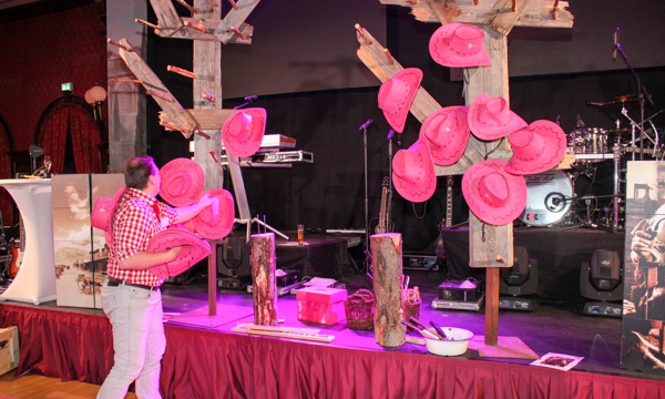 Die Hüte müssen durch geschicktes Werfen an die Baumhaken geworfen werden.