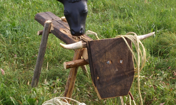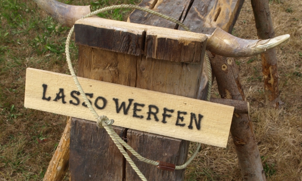 Wer trifft mit dem Lasso unsere Holzkuh. Lieferumfang: Holzkuh mit Original Kuhhörner. 2 Lassos, Abwurflinie und eine Wurfbeschreibung.