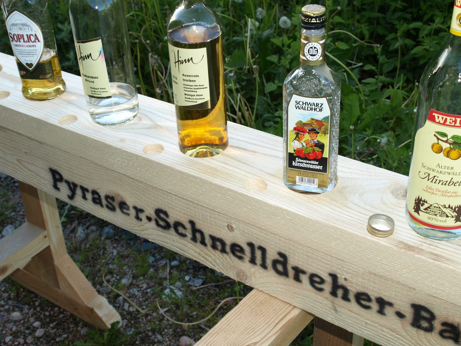 Technik-Schnelligkeits-Spiel. Wer öffnet die Deckel der 15 Sprudelflaschen am schnellsten?