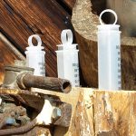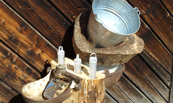 Wer zielt am besten mit den Tierarztspritzen und befördert die größte Wassermenge in den Eimer.